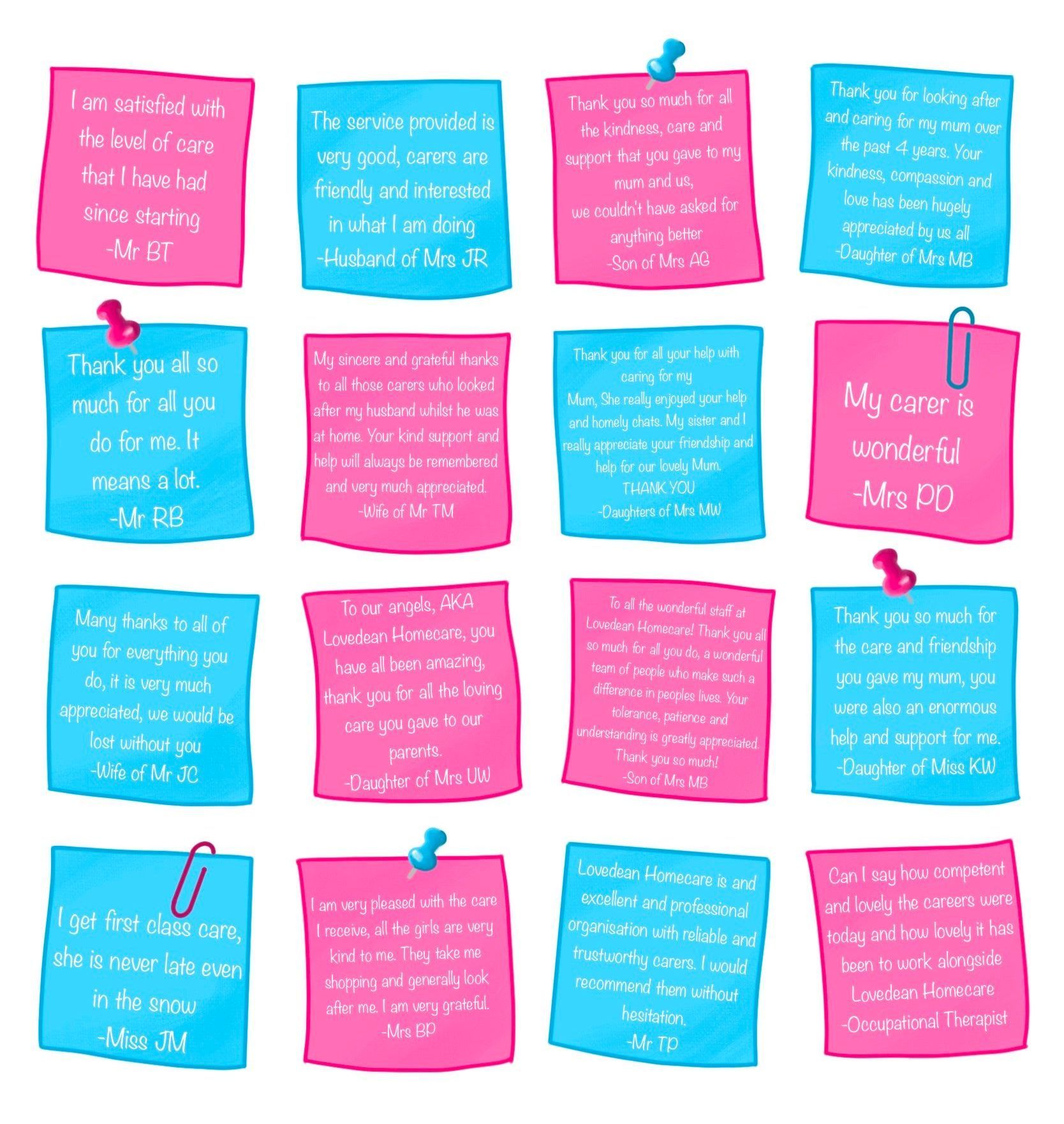 "To all the wonderful staff at Lovedean Homecare! Thank you all so much for all you do, a wonderful team of people who make such a difference in peoples lives. Your tolerance, patience and understanding is greatly appreciated. Thank you so much!"